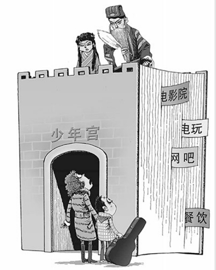 近年来,全国各地的文化馆、群众艺术馆数量不断增多。然而,在一些地方,少年宫纷纷唱起了“空城计”,儿童图书馆里摆着各种营销类书籍,工人文化宫变成了电影院、剧院等商业场所。公共文化服务场馆“有名无实”,暴露出基层公共文化服务标准不统一、供需不对路、实效性不强、可持续性差等问题。这正是: