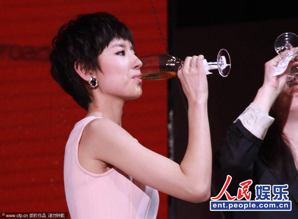 董洁短发捞金豪饮 超短裙亮相双腿暴瘦似竹竿