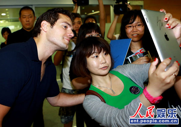 面对中国粉丝的热情,亨利·卡维尔超级NICE,一直面带微笑有求必应,不仅与粉丝们亲密合影,还为粉丝们自备的超人T恤送上亲笔签名,引得多位能与偶像近距离接触的粉丝们激动不已。此后,现场所有粉丝尾随亨利·卡维尔离去,一路跟至机场电梯通道。