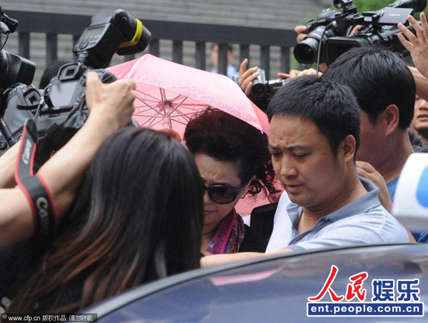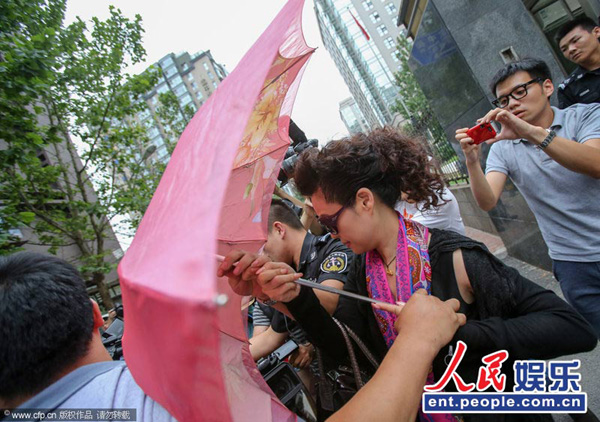 据《法制晚报》报道,李天一等5人涉嫌轮奸案于7月22日举行庭前会议,梦鸽走出法院后在工作人员的保护下急忙坐进出租车内,虽然有雨伞挡脸,不过还是被一拥而上的媒体围攻,显得十分狼狈。