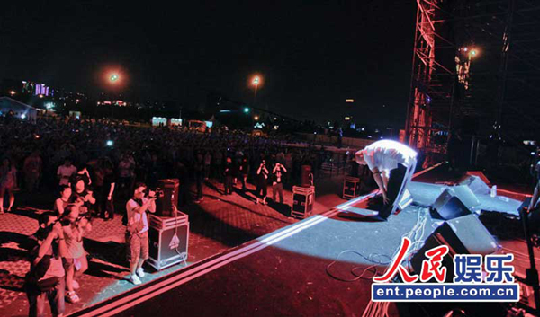 25日晚,为期两天的音乐节已接近尾声,但广大乐迷并未离去,金沙滩仍被围得水泄不通。臧天朔作为最后一个表演嘉宾携乐队在“臧天朔,出来!”的欢呼声中站上舞台。时隔六年再次亮相的臧天朔有些激动,简单调试完乐器后并未说话,静静凝视台下半分钟。全场安静下来,臧天朔忽然90度深深一鞠躬。一阵沉默后,观众爆发出了欢呼声。这一鞠躬包含了太多无法说出的话语,对观众对歌迷的感谢,对音乐的热爱,对过去的告别和对未来重新开始的信念……