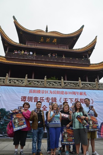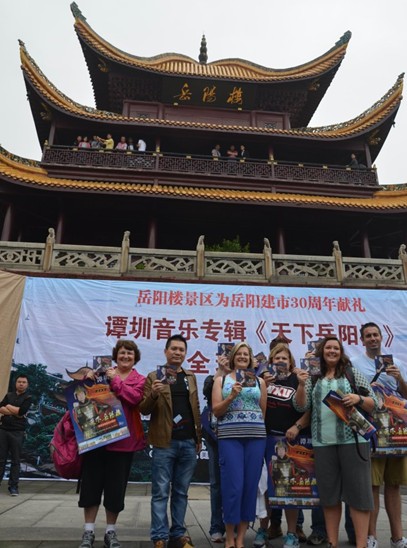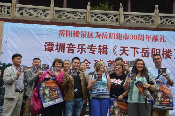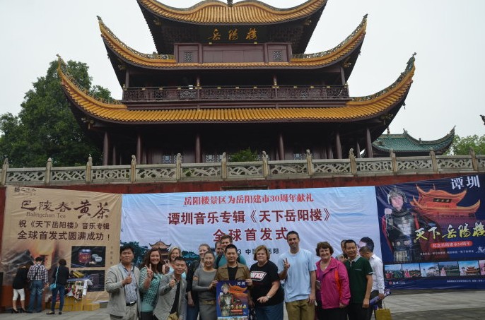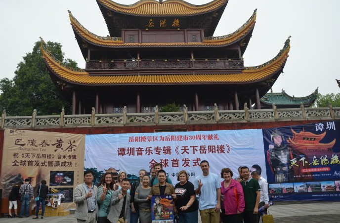 谭圳唱过不辞劳苦站马路的岳阳交警,唱过逢年过节加班加点无法与家人团聚的岳阳民警,唱过高瞻远瞩团结求索的岳阳规划人,唱过甘愿吃亏无私奉献的临湘人。他走到哪,唱到哪,坚持用歌声为岳阳代言!突然有一天,他不经意地总结了一下,自己歌颂岳阳各行各业的歌曲竟有100多首!这些歌曲因为各种各样的原因,在艺术上或许还有商酌的余地和上升的空间,但却从侧面反映了岳阳建市三十年来的历史变迁,是一份难能可贵的原生态视听档案。今年,他拿出自己准备买房子的60多万元,选取最满意的15首歌出了一张专辑——《天下岳阳楼》。他说,爱岳阳是一辈子的事情,唱岳阳是一辈子的事业。作为一名光荣的岳阳人,我只想用这张新专辑为岳阳建市三十周年献礼,表达自己对家乡的深厚感情。谭圳的行为感动了低调务实的岳阳楼景区管理者们,他们觉得用歌声宣传岳阳楼是一种非常时尚、快捷、新鲜的艺术形式。最终,由景区管委会主任黄二良先生担任总导演,促成了《天下岳阳楼》全球首发式。