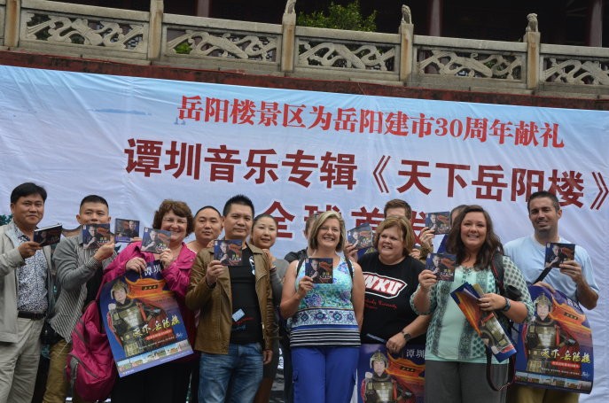 千百年来,《岳阳楼记》名扬天下,岳阳文化博大精深。作为一个岳阳人,每个人都会从骨子里由衷地产生一种自豪感:当一个岳阳人真幸福!因为岳阳楼是中国的文化符号,是上下五千年华夏文明的精华。有了岳阳楼,岳阳才是当之无愧的文化之都。历朝历代的文人骚客都在歌颂岳阳楼,只是表达的方式各有千秋:唐代的诗词,宋代的散文,明清时期的对联,都对岳阳楼的宣传起到了不可替代的作用。近些年来,人们与时俱进,开始用歌声赞美岳阳楼,今天岳阳楼景区更是迎来了第一位唱岳阳、出专辑的歌手——谭圳。很多人都知道谭圳是岳阳赫赫有名的见义勇为道德楷模,中央文明办正在评选的“中国好人”候选人,一名专门歌唱家乡美,传递正能量的主旋律歌手。他唱岳阳的山,岳阳的水,岳阳的酒,岳阳的茶,还有火辣辣的岳阳妹。最终,把一曲《情怀岳阳》唱到了央视的大雅之堂,把一曲《真英雄》唱成了临湘的旅游名片之歌,把一曲《天下岳阳楼》唱得词坛泰斗阎肃、曲坛坛斗吴颂今、文坛巨匠张步真等连夸“蛮好,蛮好”。