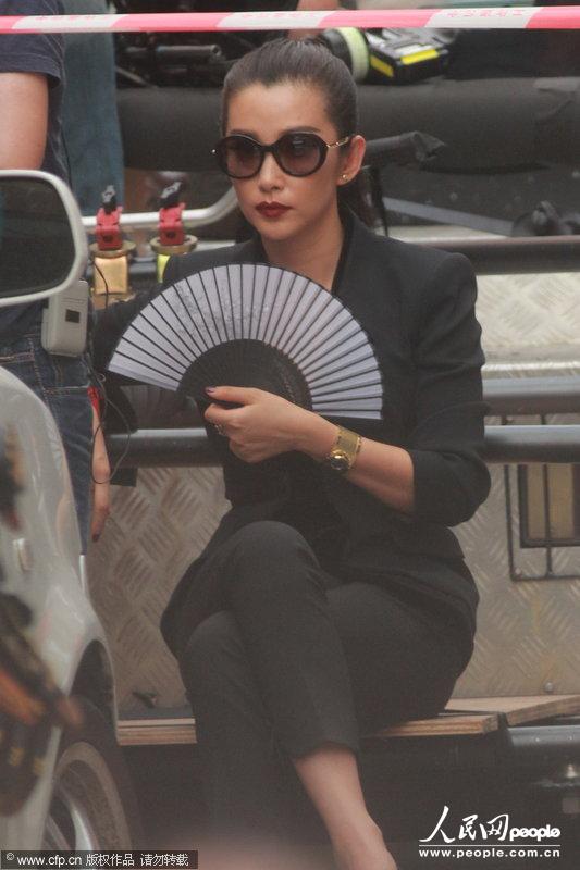 10月20日,电影《变形金刚4》香港热拍。记者在香港深水埗首次拍到中方女演员李冰冰剧中造型。当日,李冰冰一身黑色利落西装,烈焰红唇,冷艳疏离,气场爆棚,造型颇像美剧中“怪咖女科学家”,与变4导演迈克尔贝一贯喜欢的美艳性感、强势干练的形象一脉相承。据悉李冰冰在戏中饰演的是制造变形金刚的公司首席女科学家,堪称变形金刚之母。造型上美艳、冷酷,要挑战的是智慧与美貌并重,性感与力量兼具的“金刚芭比”似的角色。记者在片场拍到李冰冰一到片场就与导演亲密相拥,相谈甚欢,原本黑面的迈克尔贝看到冰冰到场终于露出笑容,看起来对这位中方女演员喜爱有加。当日正在拍摄的是一场闹市飞车戏,李冰冰似足香港古惑仔大姐大,帅酷美艳的金刚芭比飞车决战,场面激烈,扣人心弦。剧组甚至封闭了深水埗两条街区进行拍摄。CFP/CFP