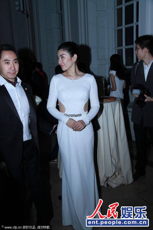 12月09日,第一届伦敦国际华语电影节闭幕酒会,演员范冰冰、黄奕、颜丙燕、房祖名、李治廷、潘粤明、魏一等和导演谢飞、非行等人亮相。范冰冰带着蓝帽十分抢眼,她还和老前辈、导演谢飞亲切交谈显人缘。黄奕则是穿着白色礼服,皮白色皮草显得雍容华贵。