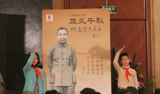 北京讯(李深根):2013年12月27日,在北京隆重举行的《中国电影巡礼•卫星影院》的开幕式响起了“我们是共产主义的接班人……”的少先队队歌,两名少先队员缓缓揭开了文献纪录片《正义千秋》首映式的序幕。这是一部根据老一代革命家习仲勋同志撰写《序》的回忆录《高崇民传》改编并联合摄制的文献纪录片,由中央新闻电影制片厂和中新瑞智文化传播(北京)有限公司联合出品。该片深情地讴歌了老一代革命家、原全国政协副主席高崇民同志的传奇人生,他一生的经历是一部中国近代史的缩影,充满传奇,但由于他长期从事党的隐蔽战线和统一战线工作,其人其事鲜为人知。本片试图以文献纪录片的形式沿着他的足迹,探索挖掘并展现一个中国爱国知识分子艰辛坎坷而又光辉的历程。影片把我们重新带入了那段血雨腥风年代,许多在座的革命家后代、艺术家都忍不住潸然泪下,这不仅是对革命前辈表示深切的怀念和崇高的敬意,更为了昭示青年后辈,睹先人奋斗之足迹,学习其热爱祖国之情操,知其所献身事业之伟大恢宏,以激励我们把前人开创的事业,继往开来,进行到底。