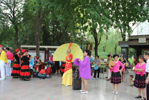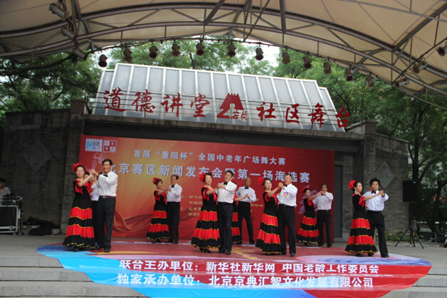 朝阳区安贞社区公园,首届“重阳杯”全国中老年广场舞大赛北京赛区新闻发布会暨第一场海选赛正在这里紧锣密鼓举行,从华严北里舞蹈队表演的爱国歌曲《我们的生活充满阳光》交谊舞,到回龙观龙锦舞蹈队表演的广为传唱的《最炫民族风》广场舞,再到奥之光舞蹈队表演的时尚服装走秀,广场舞大妈们正在用广场舞的形式跳出属于她们的最唯美的爱情童话。