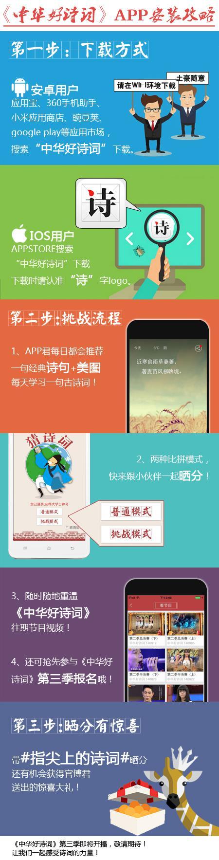 据悉,此款手机应用的报名渠道,直接连接《中华好诗词》第三季节目的录制,在电视观众与网络用户的期盼下,11月14日,《中华好诗词》第三季即将迎来首次录制,同时此款APP将不断升级,为所有喜欢诗词的用户提供新体验。
