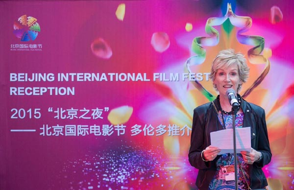 人民日报欧洲网消息 多伦多当地时间9月11日晚,第40届多伦多国际电影节开幕第2天,北京国际电影节组委会在多伦多举行2015“北京之夜”北京国际电影节推介会。多伦多电影节董事会主席丽萨•德•维尔德,多伦多电影节艺术总监卡梅隆•贝利、中国驻多伦多总领事薛冰、中国著名导演、编剧贾樟柯以及来自各大洲的著名导演、制片人,欧美各大电影公司高层等近200多名电影业界人士出席活动。