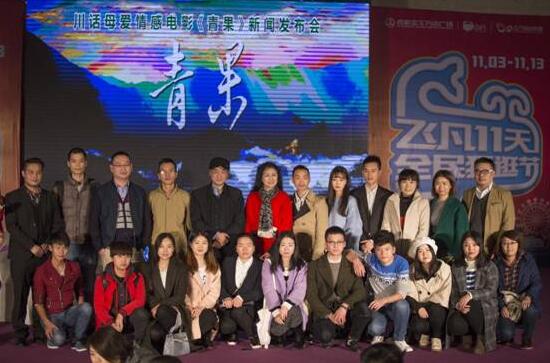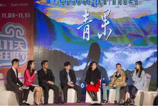 11月12日下午,由熊猫微视出品,四川广播电视台、四川致维天成文化传媒有限公司、四川蓝漂日用品有限公司联合推出的川话母爱催泪情感电影——《青果》新闻发布会在成都金牛万达影城举行。制片人曾科、导演/编剧王墨、监制杜蕾、主演王小川、筱玉、彭放、吴静等主创人员以及全国众多媒体出席了本次《青果》电影新闻发布会。