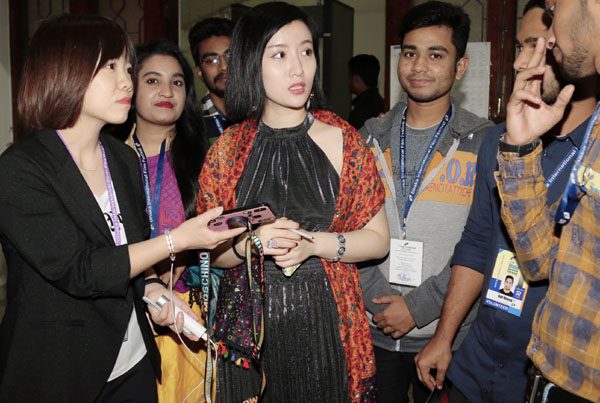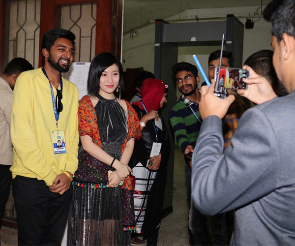 孟加拉观众的合影模式非常有意思,他们喜欢一个人先来,之后是“一拖二”“一拖三”……最后总能变成“全家福”。而且,与职业化粉丝不同的是,当地观众会将自己的联系方式写下来“塞给”导演,他们更像是在交朋友,而不是追星。
