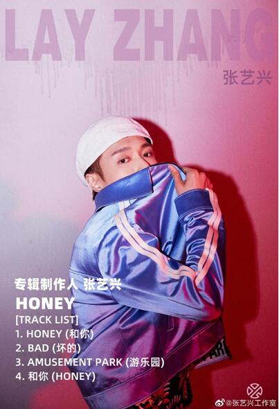 “萃取、蜕变、成长,制作人张艺兴向国际音乐市场传达M-POP的信念一直未变。” 本次发售的全新EP《HONEY》,正是张艺兴发出信念之声、向世界级音乐梦想迈进的展现。EP四首歌高糖上线,包括主打歌《Honey》的中、英文版及《Bad》、《Amusement Park》。歌词甜爆人心,让人分分钟想单曲循环1007遍!