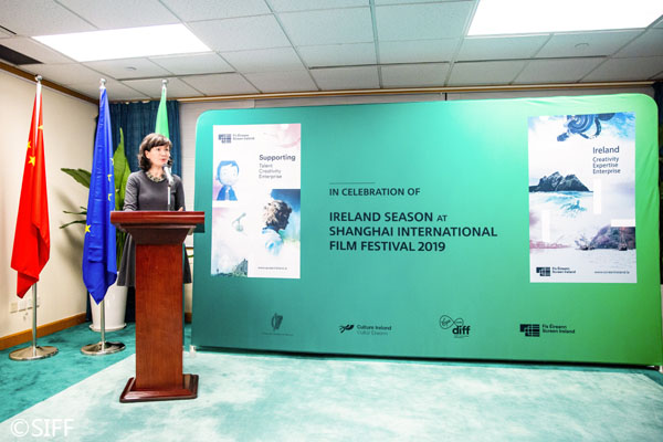 人民日报欧洲网讯 值上海国际电影爱尔兰周开幕之际,爱尔兰驻沪总领事Healy女士代表领馆全体工作人员,于18日晚举行招待会欢迎远道的而来的爱尔兰电影人。都柏林国际电影节总监Grainne Humphries以及参加展映的部分影人来到现场。