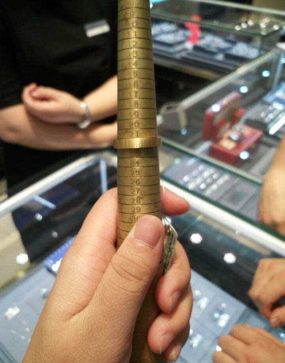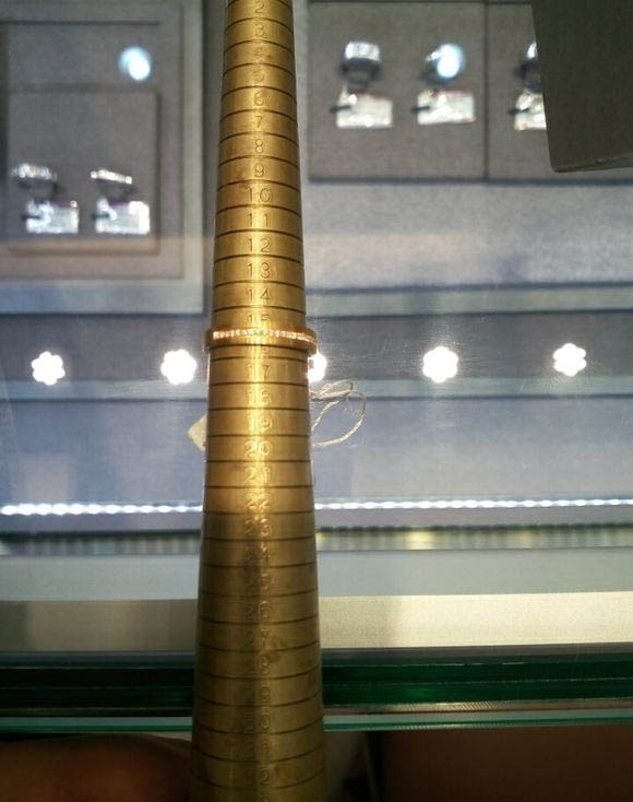 离开后没多远,老婆心想刚才没看清楚,想再回去问问,指圈大小都没看清楚,对此本人就牺牲一下,陪着老婆又走了一圈,回到店后,本人老婆说希望能测测真戒指圈到底多大,这一提不要紧,突然感觉店员有点紧张,为此本人本来无所谓的,但是看到这本人确实想看看到底什么情况,结果不测不要紧,一侧大跌眼镜,真女戒标签16号,结果测出来15.5号,对此本人质询店员,测量指圈号明显与真戒不一样,怎么会向赠送说的那样测量指环与真戒大小号一样,并且佩戴合适可以赠送呢?真戒与测量指环有差别,那测量什么呢?这不是忽悠老百姓吗?有差别不要紧,关键是差了这么多?通灵你真让小伙伴惊呆您的手段。(我敢保证参加此活动的客户肯定很多,但发现这一问题的估计没有。)