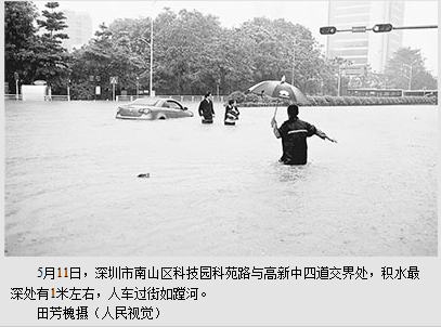 据广东省防总消息,5月11日,珠三角及粤北继续遭受暴雨袭击,东江、西江和北江三大江河的水位同时呈上涨态势,深圳更发生严重内涝。广铁集团介绍,受特大暴雨影响,广深线有40对动车组停运。