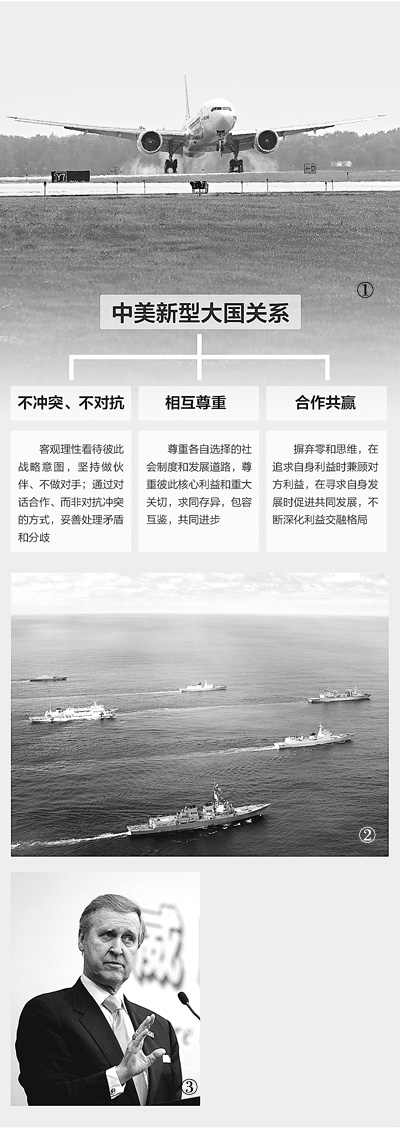中国提出建立新型大国关系,目标是想创造一种中美关系,使我们能够和平共处、和平竞争,而不是在经济、军事或其他领域进行对抗。这不是一个旨在对抗的关系,而是谋求共赢的局面。我们都知道,中美战略方向不同,但我们从上世纪70年代建交开始就达成这样一种共识:在全球化时代,两国越来越紧密地相互依存,中美之间如果出现冲突,两国都难以承受;合作不仅会使两国受益,也使世界受益。这个共识一直指导着我们制定双边政策、应对全球挑战。
