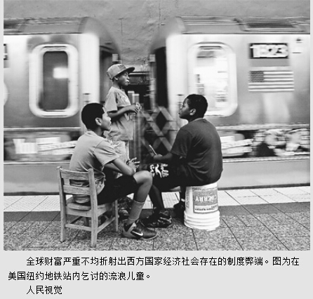 伦敦威斯敏斯特大学经济和社会学教授普林斯对本报记者分析说,全球范围的贫富鸿沟越拉越大,反映出财富分配机制轴心发生断裂的客观现实。宏观上看,人类创造的财富不是在减少,而是在逐年增多,但财富输送和分配等环节出现了严重问题,富人越来越富,他们的财富像滚雪球一般越积越多,贫苦的人则变得越来越穷。这种循环的过程,是人类的悲剧,也是由国家制度本身的弊端形成的。有媒体甚至指出,西方资本主义国家的许多政策是为富人量身定制的,富人如鱼得水,穷人则生活得捉襟见肘。
