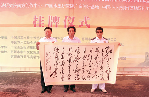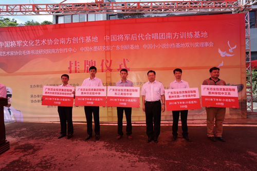中国将军文化艺术协会南方创作基地、中国将军后代合唱团南方训练基地、中国艺术家协会毛体书法研究院南方创作中心、中国水墨研究院广东创研基地、中国小小说创作基地“双刊奖”理事会挂牌仪式在惠州举行,并授予广东百业投资集团董事长钟期为南方分会会长基地主任。