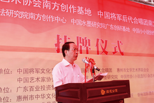 中国将军文化艺术协会南方创作基地、中国将军后代合唱团南方训练基地、中国艺术家协会毛体书法研究院南方创作中心、中国水墨研究院广东创研基地、中国小小说创作基地“双刊奖”理事会挂牌仪式在美丽的全国文明城市广东惠州红花湖隆重举行。中国将军后代合唱团为迎接党的92岁生日七一前夕在惠州文化艺术中心专场演出。