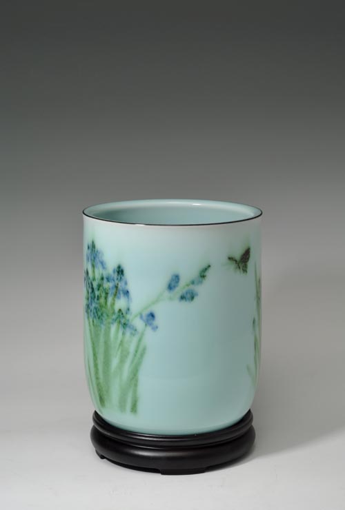 俗话说,看作品如看其人,陈少青是一位极具思想与艺术内涵,有着非凡的艺术天赋,富有古典气质魅力的青瓷女艺术家,所创作的许多作品足以证明,比如作品《蝴蝶兰》整体素雅可亲,以粉润的青绿呈现,似兰似青,植物自然随风摇弋,蝴蝶迎风栩栩如生,大有跃欲试粘香附青之意。