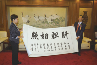 金秋十月,在全球华人共同祝贺祖国成立64周年之际,著名书法家赵万和翰墨清风书法展在全国政协阳光厅成功举办。全国政协原副主席、政协书画室主任张思卿,中国文联副主席、全国政协科教文委副主任陈晓光,原国家商务部副部长、中国商会会长何济海,原国防大学基础系主任毕泗振将军,齐白石研究院副院长齐秉正,扬州市政协副主席王克胜、高邮市人民政府市长方桂林等出席并参观展览。