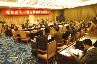 开幕式后,众多专家学者在欣赏过书法作品后,还参加了赵万和书法作品展座谈会。无论是开幕式致辞还是座谈会发言,专家学者,包括专业媒体界资深人士普遍认为:赵万和的书法根植传统,入古出新,自成风貌。其楷书融入了欧阳询、李北海的笔意,典雅劲健、端正秀逸;行草以二王为宗,吸收宋、元、明及近现代诸名家之字势和点法,形式端丽遒美,气韵流畅,章法自然。著名专家学者出席书法展座谈会