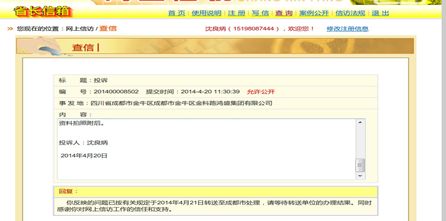 2013年11月至12月,沈良炳等农民工多次向成都市金牛区建设局,公安局],信访办,仲裁委,劳动保障局等部门投诉,互相推诿,毫无结果。然后当事人又向省政府建设厅,仲裁委,信访办等部门反映:均答复:找成都市政府和开发商老板,再次推诿了事。沈良炳迫不得已向国务院信访局投诉。