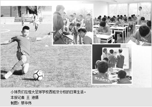恒大足球学校西班牙分校2001年龄段梯队的中方教练张堃,曾是国内1987年龄段的青训球员,退役后考入北京体育大学,又在香港读了研究生。张堃经常拿自己的经历告诉小球员们学习文化知识的重要性:当年中国足球很火,大家都很踊跃去踢球,但真正能够踢出来的没有多少个,那剩下的都去干吗呢?自己能够回过头来从事与足球相关的工作,是因为在退役后选择继续学习,现在才能以另一个身份为当年的足球梦奋斗。