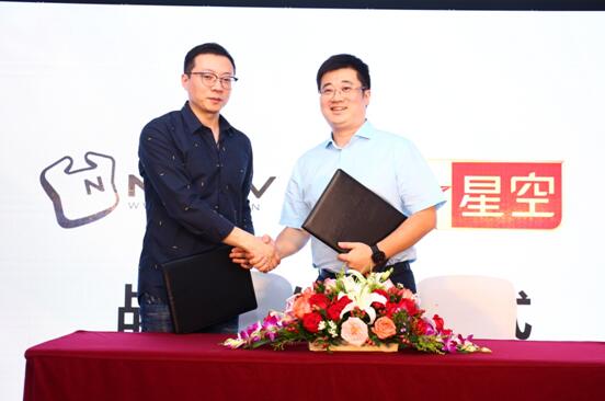 NEOTV CEO林雨新与星空卫视台长段炼签署合作协议