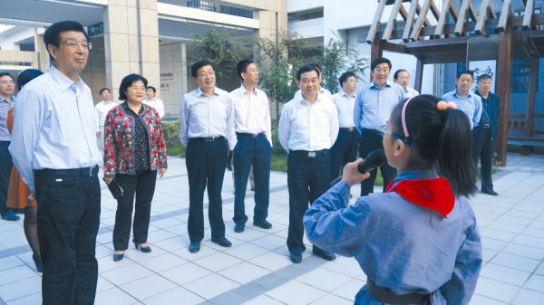 日前,江苏省政协秘书长吴洪彪、原省国信集团总经理王惠荣等十余名淮安区级驻宁领导在区委书记吉子俊陪同下参观了周恩来红军小学。在周恩来红军小学,他们聆听了校长管晓蓉创建五星级红军小学的工作汇报,实地参观了可承担国家级比赛的体育馆、800座的红军娃剧场、3000多平方米的书画自由创作展示区以及以恩来园为核心的校园六大主题园。在红军小学教室,他们兴致勃勃地又当了一回小学生,亲身感受触摸屏多媒体教学一体机和环保微粒子书写板的课堂教学效果,连赞这样的教学形式准确、生动、效果好。他们认为,周恩来红军小学在教育现代化航程上已经位于全省前列,堪称全国一流。(姚风明 咸高军)