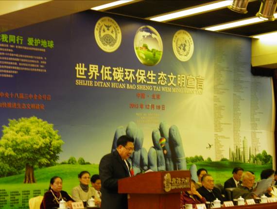 12月19日下午二点;世界低碳环保生态文明宣言在国务院老干部局隆重召开,此次新闻发布会是由联合国世界和平基金会,世界低碳好环保联盟总会,联合国华盟世界低碳环保总会主办的;到会的领导有全国人大环境委员会副主任张文台,国务院首批稽查特派员;刘吉;原国家侨联主席;庄炎林;各大部委领导近百人,各行届精英及新闻媒体记者,五百人之多。
