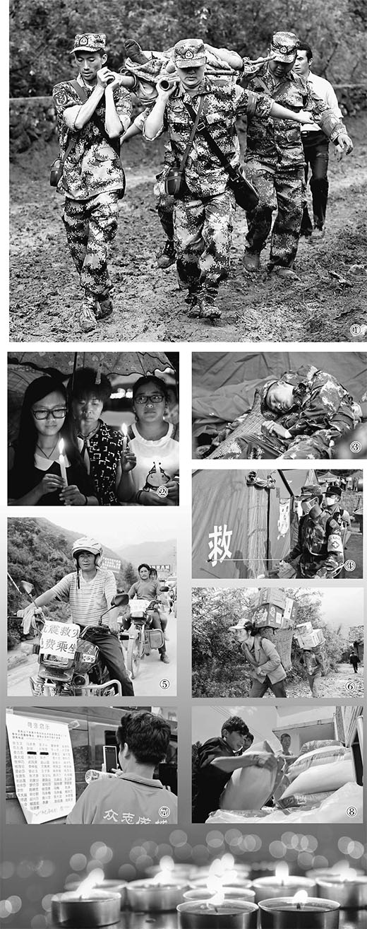 图②:9日,鲁甸广场前,震区民众举行哀悼仪式。