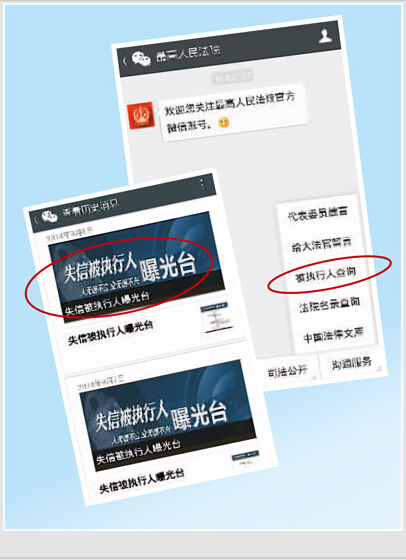 进入9月,最高人民法院的微信平台上,新增了“失信被执行人曝光台”,在更广范围加大对失信被执行人的惩戒力度,信用惩戒进入“微时代”,这一举措将进一步提升公布失信被执行人名单制度的威慑作用,推进社会信用体系的建设和完善。