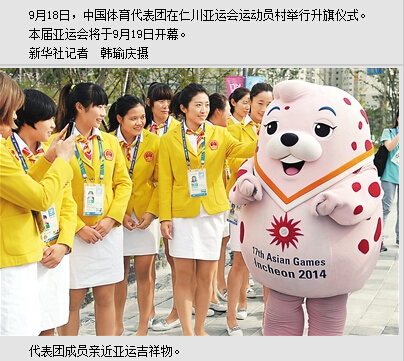 仁川亚运会今天开幕 中国代表团举行升旗仪式