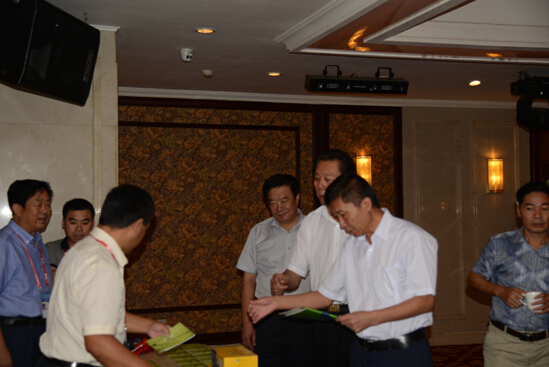 中国循环经济协会副秘书长侯建生等参会领导参观“农三多”产品后赞不绝口