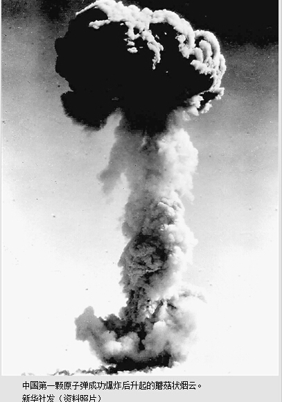 1964年10月16日,我国成功爆炸第一颗原子弹,“东方巨响”震惊了世界。这一成就集中代表我国科学技术当时所能达到的新水平,有力地打破了超级大国的核垄断和核讹诈,提高了我国的国际地位。中国政府发表声明:中国一贯主张全面禁止和彻底销毁核武器;中国进行核试验,发展核武器,是被迫的,是为了防御,为了保卫中国人民免受核威胁。中国政府郑重宣布,在任何时候,任何情况下,中国都不会首先使用核武器。