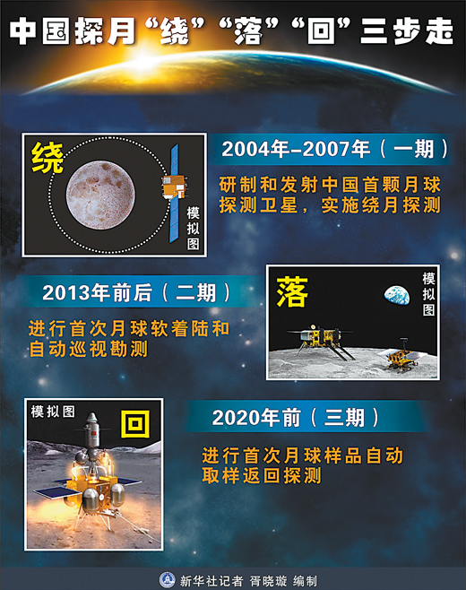 据介绍,2013年12月,嫦娥三号任务圆满成功后,我国探月工程全面进入“绕、落、回”三步走发展规划的第三期,计划于2017年前后执行嫦娥五号任务,实现无人自动采样返回。为突破和掌握航天器再入返回地球关键技术,工程决定先期实施再入返回飞行试验,即发射一颗飞行试验器,飞抵月球附近后自动返回,以接近第二宇宙速度进入大气层,经跳跃式弹起后,再次进入大气层,并在内蒙古中部地区着陆。