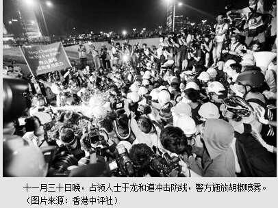 “占中”极端分子夜围港府 与警方发生大规模冲突