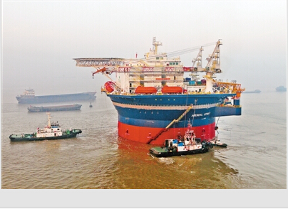 “希望7号”是世界首座半潜式圆筒型海洋生活平台,其独特的圆筒型设计理念具有技术先进、安全稳定和作业可靠等优势。图为1月11日“希望7号”出海试航。试航期间将进行推进器安装作业,航速、倾斜试验和全球定位系统等相关试验。