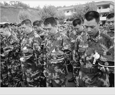 参加完哀悼活动后,救援官兵立刻冒雨上山,继续寻找失踪人员。