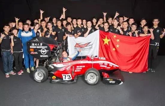 来自湖南大学机械与运载工程学院的学生张苡同学介绍,本次燃油组比赛有来自全世界各个国家共71支队伍参赛,车队在为期六天的比赛中认真备战,积极应战。在大赛的“成本报告"(成本报告是体现车队对整车生产制造成本的分析和控制能 力)比赛中斩获第4名,此成绩是中国的赛车队在德国赛该项目中取得的有史以来最好的名次。赛车在直线加速、耐久测试和效率测试中也分别获得了第15名、第 13名和第15名的成绩。且直线加速和耐久测试也是中国车队参加德国赛有史以来取得的最好成绩。“本次比赛成绩对车队来说都是历史性的突破,虽然没有拿到 很好的名次,但大家都很满意,也学到了很多东西。”