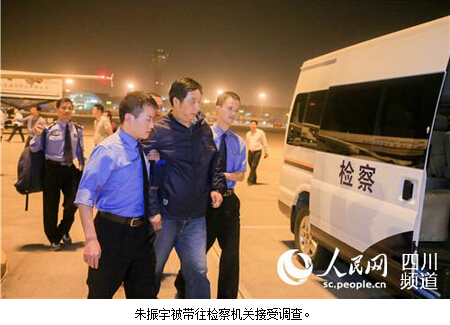 2015年10月13日晚,成都市检察院检察人员在成都双流国际机场将“红色通缉令”上的朱振宇押解下飞机,10月19日,完成了对该男子的DNA比对和身份鉴定,结果显示:此人正是100名“红色通缉令”名单中排在第24号,涉嫌贪污犯罪的外逃人员朱振宇。