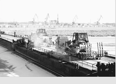 黑河—布市中俄口岸货运浮箱固冰通道开通
