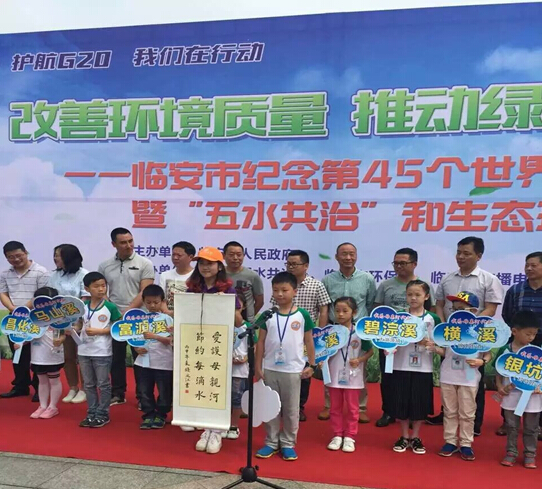 以“改善环境质量、推动绿色发展”为主题的“六五”世界环境日纪念活动在临安市人民广场举办,五水共治和生态环保成果展,亲水小卫士颁奖仪式,18位亲水小卫士代言母亲河……各种载体的活动一次次唤起现场群众对临安人追随绿色发展的记忆!