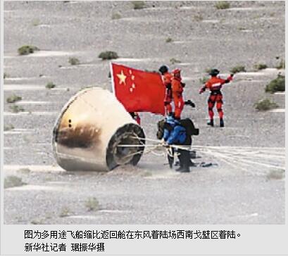 本报文昌6月26日电 (记者余建斌、丁汀、刘诗瑶)6月26日15时41分,由长征七号运载火箭搭载升空的多用途飞船缩比返回舱,在东风着陆场西南戈壁区安全着陆。返回舱外观良好,状态正常。
