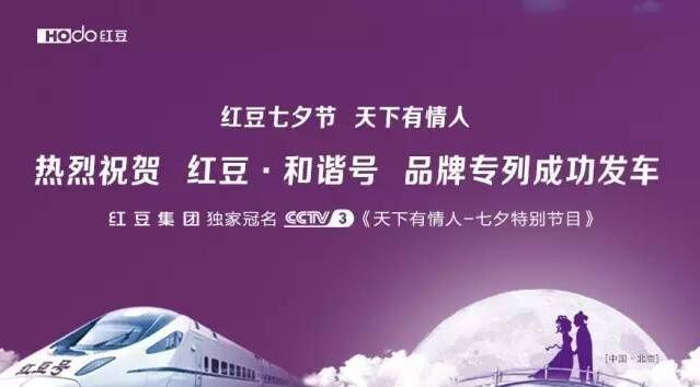 8月9日七夕节当天,红豆联姻中国高铁重磅推出的“红豆·和谐号”品牌专列G127次列车于当天上午11:35从北京南站发出,驶向一千公里之遥的魔都上海。由红豆冠名的京沪高铁“红豆·和谐号”品牌专列发车仪式在北京南站召开,这是红豆的第三次品牌专列冠名活动。红豆·和谐号品牌专列从北京南站出发,列车纵贯南北,途径北京、河北、山东、江苏等全国重要省份、直辖市,终点站到达上海虹桥站,是一条由帝都开往魔都的寻爱之旅。乘客乘坐红豆·和谐号品牌专列,更能体会红豆带来的文化韵味,感受中华情文化的滋润熏陶,更能激发人在旅途,爱在心头的美好享受。