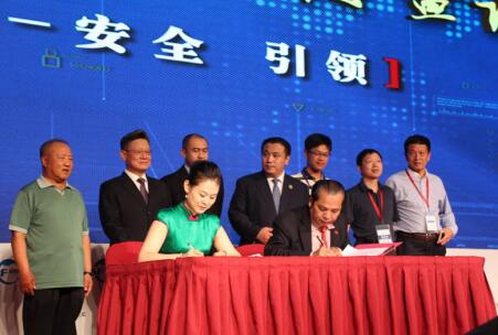 北京紫荆创新农业研究院执行院长徐子凌与德商汇总会长王锡钧签署了战略框架协议,并共同启动“德”字标仪式。