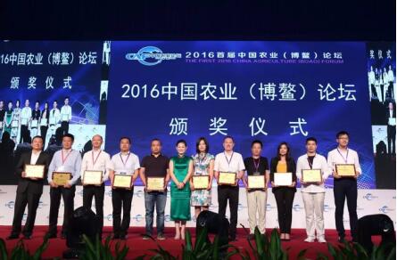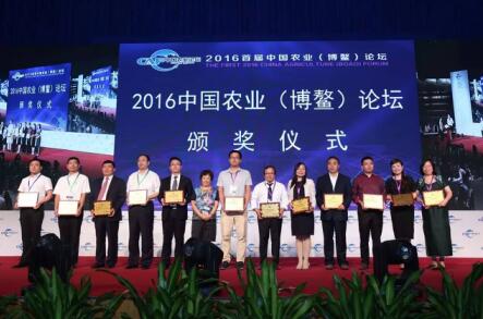 中国科学院院士赵玉芬为2016中国农业(博鳌)论坛获奖组织、企业和个人授牌:博鳌亚洲论坛国际会议中心大米供应基地及绿色有机农产品供应基地——黑龙江省庆安县,中国优质绿色农产品创新研发基地及中国农民专业合作社创新示范基地——吉林省梨树县,农业科技进步奖——北京微普联合生物科技有限公司,推荐品牌——地道龙江品牌管理有限公司,农业特殊贡献奖——云南龙垚凤谷农业科技有限公司,论坛指定食材供应商——杭州初稻农业科技有限公司,黑土地保护成就奖——王贵满,特殊贡献奖——亓昭英。