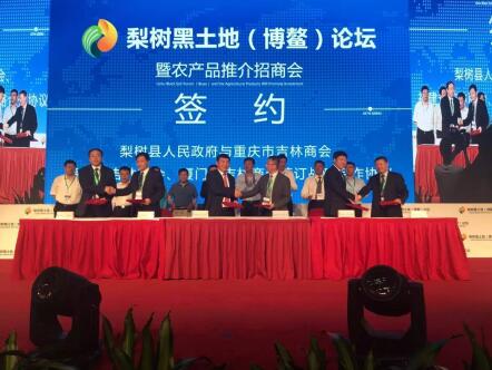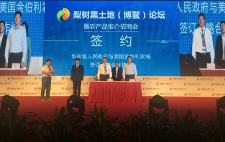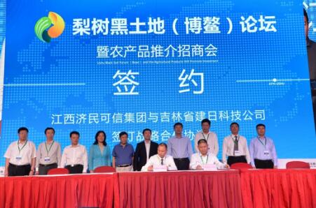 掀起论坛高潮的是梨树县与美国金伯利农场远程签署了战略合作协议,展示了梨树的国际化步伐,此外,在签约仪式环节,还进行了吉林省梨树县人民政府与厦门吉林商会签约,江西济民可信集团与吉林省建日科技公司签约,梨树经济开发区与山东农大肥业公司签约,梨树经济开发区与山东泰宝生物科技公司签约。