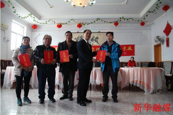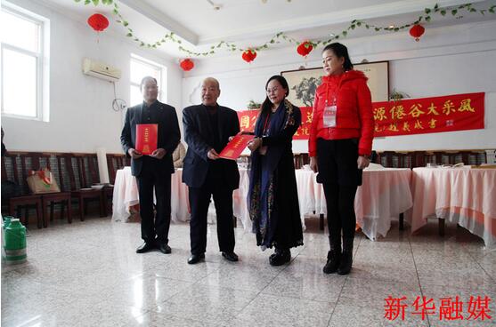 桃源仙谷旅游景区管理处处长郭宝发致欢迎词,向书画家赠送了《世外桃源》大型画册;北京旅游报总编刘国伟介绍了景区特色,赠送了《北京旅游报》样报;书画中国公益行组委会主任康留国向书画家、媒体代表颁发了《采风证》,宣布书画中国公益行走进桃源仙谷活动正式启动。